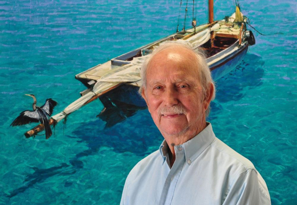 Al Barnes in front of one of his paintings, Fore & Aft.