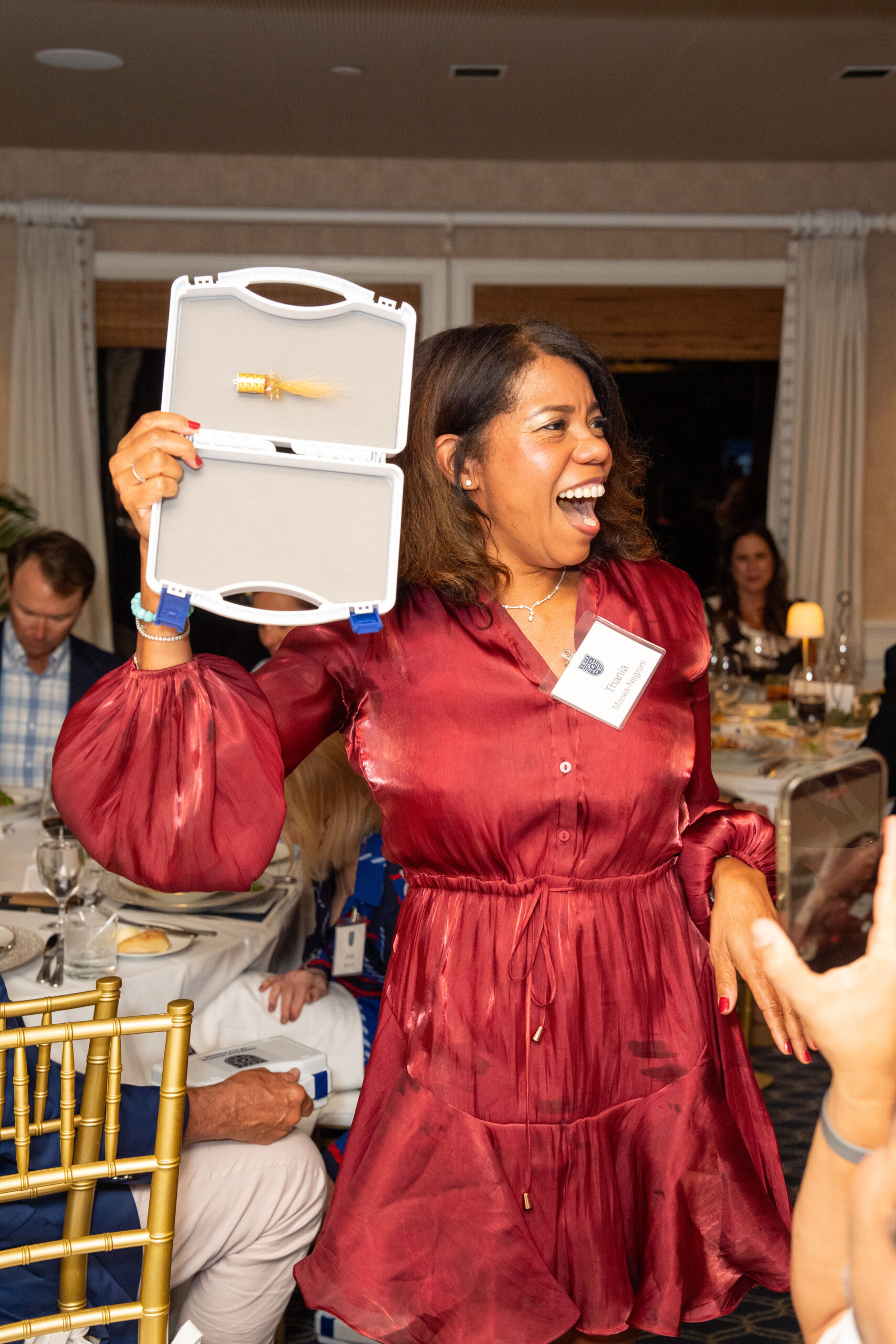 The crew at American Saltwater Guides Association provided each guest with an AMFF x ASGA boat box—and one lucky attendee discovered the golden fly inside, winning a day of guided fishing with Mike Holliday. Guests also enjoyed a new collaboration between the Lower Keys Guide Association and Cayo Hueso Brewing: Skinny Water Lager, which was a hit throughout the cocktail reception.