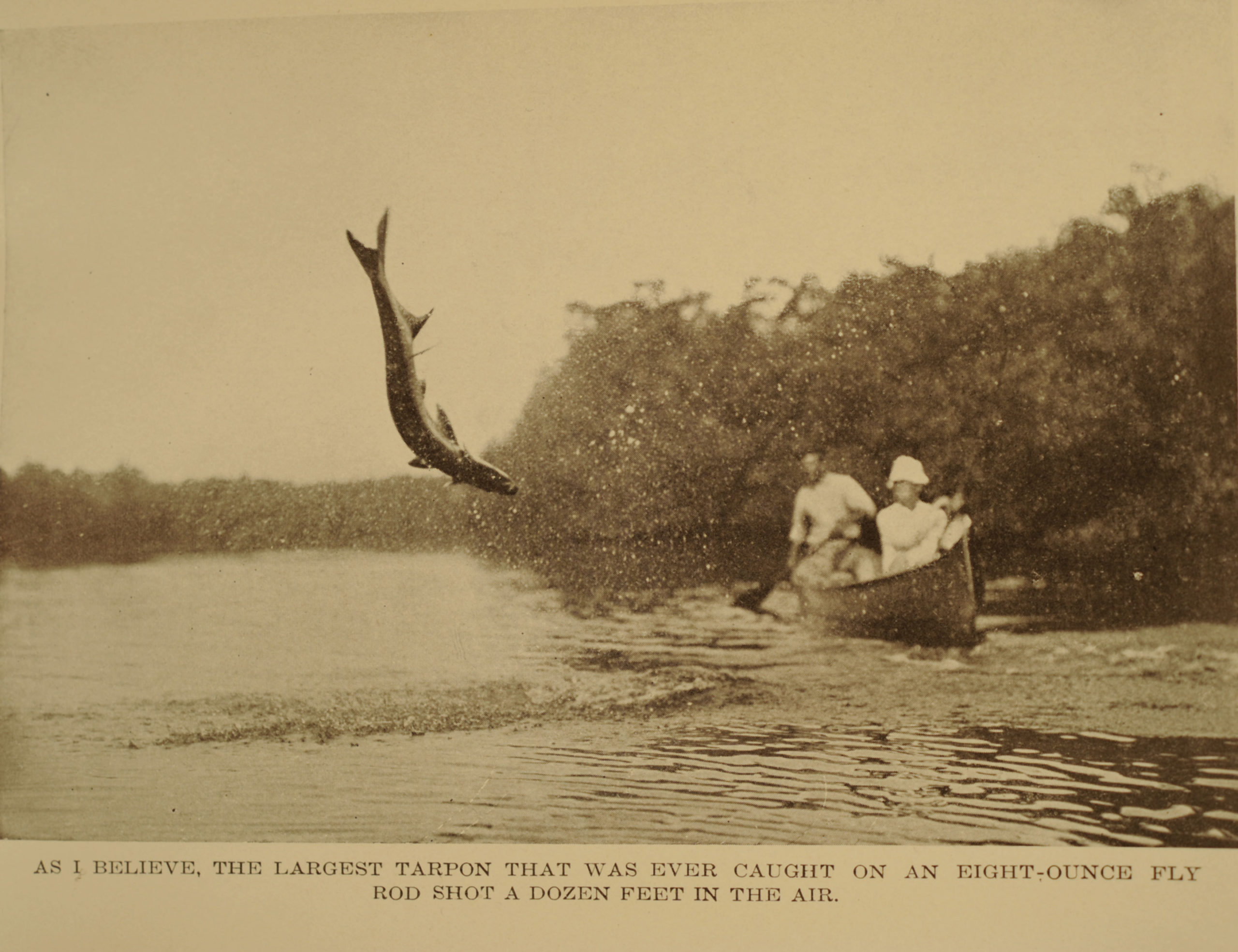 The tarpon meets every demand the sport of fishing can make. He fits the light fly-rod as no trout ever dreamed of doing and leaps high . . . a hundred times for every once that a brook trout clears the surface. . . . When grown to the size of the average man he is no less active. . . . To one who has known the tarpon, the feeble efforts of the salmon to live up to its own reputation are saddening. . . . Time would be wasted in seeking for comparison among lesser fish than salmon. . . . Played gently from a smooth-running reel . . . his capture is not beyond . . . a robust child . . . or the great fish can be fought furiously . . . they have landed on my head, caromed on my shoulders, swamped my canoe, and one big slippery form dropped squarely into my arms.14